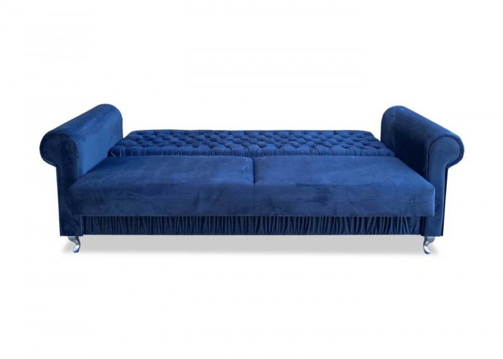 Kanapa Emma 3 osobowa z funkcją spania przyciąga uwagę i upiększa wnętrze z estetycznego punktu widzenia. Jej klasyczny kształt z masywnymi podłokietnikami i ozdobnym oparciem tworzy wrażenie mebla wizualnie dopełniającego wnętrze. Ta elegancka sofa szybko stanie się jedną z głównych atrakcji Twojego domu, nie tylko ze względu na swój nowoczesny wygląd, ale także ze względu na łatwość użytkowania i użyteczność. Kanapa szybko przekształca się w wygodne łóżko, które może pomieścić do dwóch osób. Sofa jest wykonana z trwałych materiałów. Posiadamy szeroki wybór tkanin tapicerskich i rodzajów nóżek.